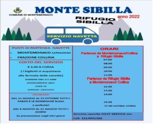 Per raggiungere il Rifugio Sibilla il comune di Montemonaco mette a disposizione un bus navetta che parte dal centro di Montemonaco nei seguenti giorni e orari (anno 2022):